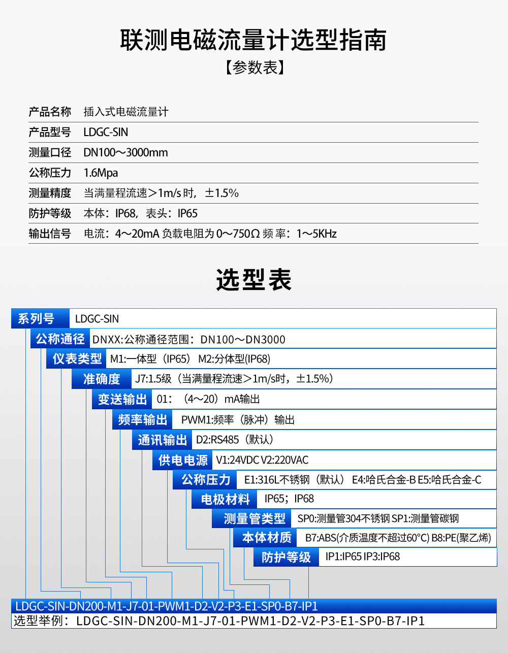 聯測儀表LDGC-SIN插入式電磁流量計污水廢水防腐