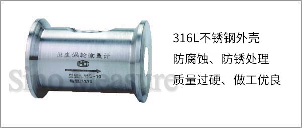 聯(lián)測(cè)LWS-SIN衛(wèi)生型渦輪流量計(jì)儀表外殼是用不銹鋼(316L)制成,機(jī)芯部分使用特種材質(zhì),具有良好的防腐蝕、防銹能力。