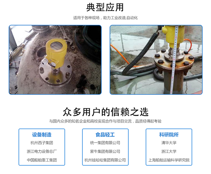應用行業(yè) SIN-RD701導波雷達液位計應用于水液儲罐、酸堿儲罐、漿料儲罐、固體顆粒、小型儲油罐、各類導電、非導電介質、腐蝕性介質。如煤倉、灰倉、油罐、酸罐等。