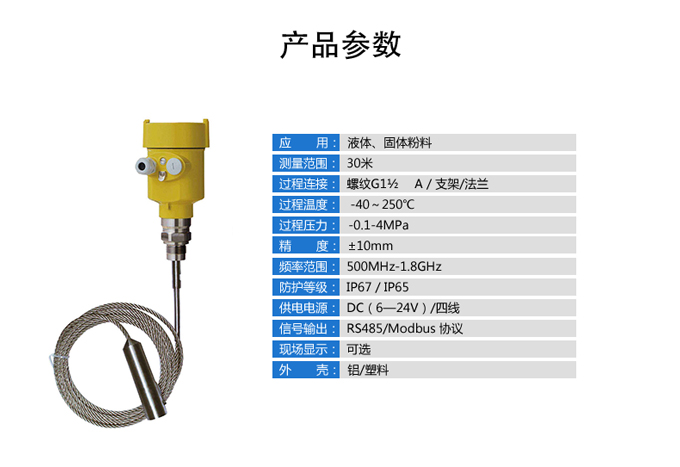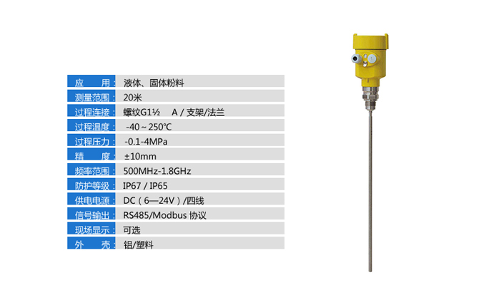 導波雷達是基于時間行程原理的測量儀表,雷達波以光速運行,運行時間可以通過電子部件被轉換成物位信號。探頭發(fā)出高頻脈沖并沿纜式或桿式探頭傳播,當脈沖遇到物料表面時反射回來被儀表內的接收器接收,并將距離信號轉化為物位信號。