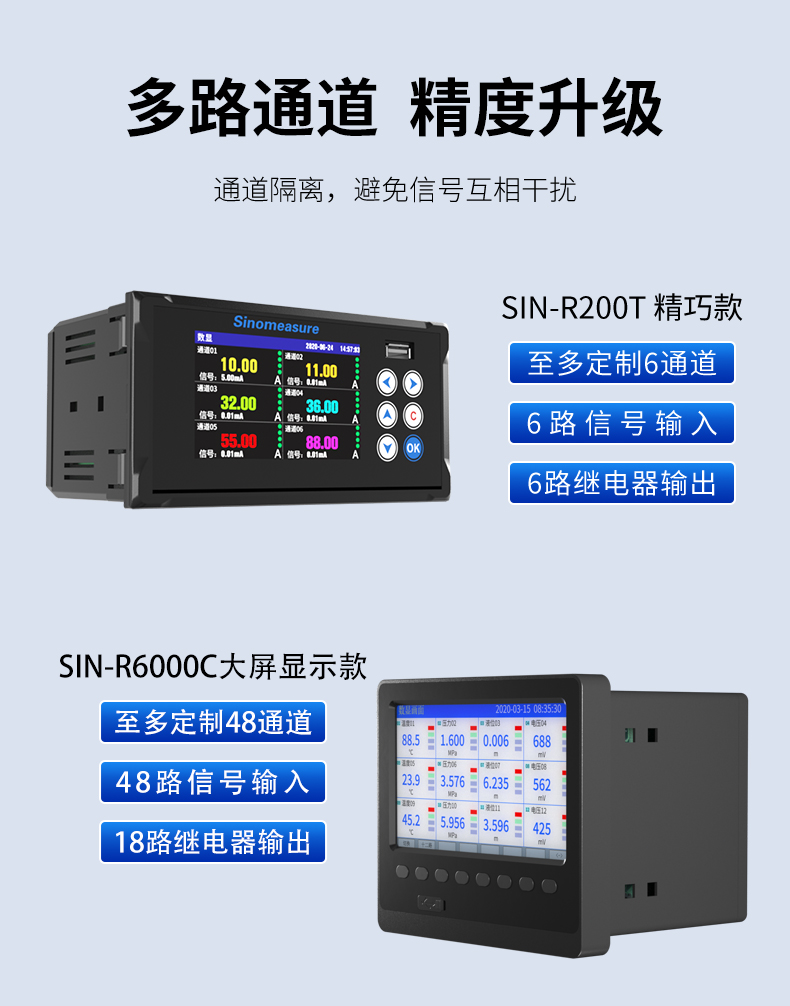 SIN-R6000C系列彩色無紙記錄儀48路萬能輸入,可帶18路報(bào)警輸出,12個(gè)變送輸出,RS232/485通訊接口,以太網(wǎng)接口,微型打印機(jī)接口和USB接口,SD卡插座;可提供傳感器配電;具有強(qiáng)大的顯示功能,實(shí)時(shí)曲線顯示,歷史曲線追憶,棒圖顯示,報(bào)警列表顯示。