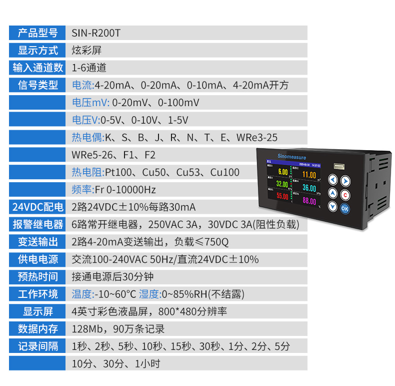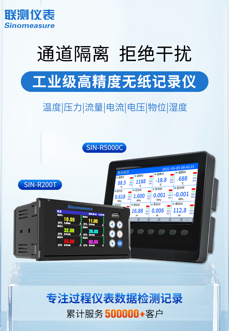 應用行業 SIN-R5000C無紙記錄儀 12 路萬能輸入(可組態選擇輸入:標準電壓、標準電流、熱電偶、熱電阻、毫伏等)。